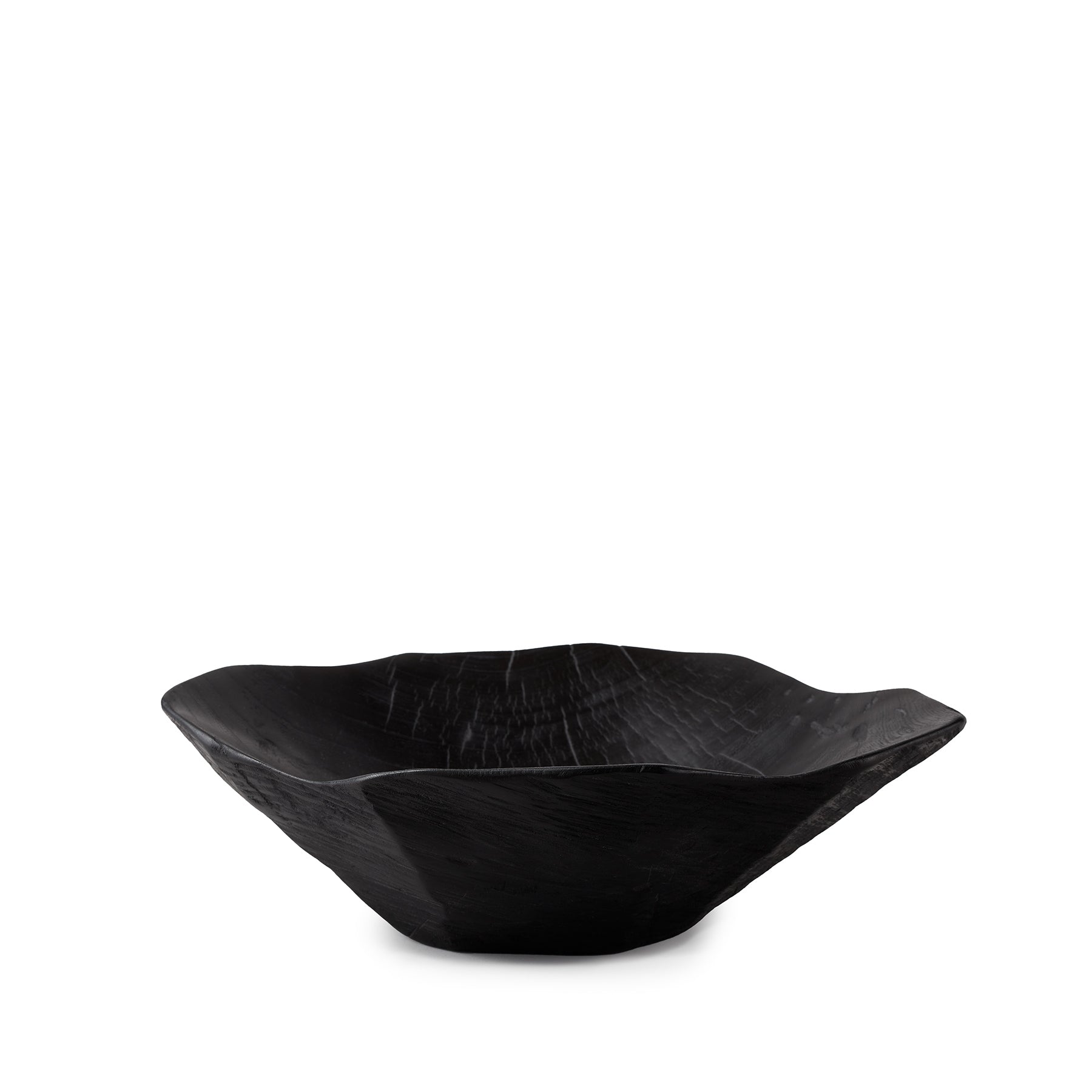 Taka has taken beautifully figured wood and carved it into a large bowl with organic shapes and textures. The piece is stained a dark black and finished with a smooth matte varnish. Taka crafts his pieces with attention not only to form but also to how the piece will feel in the hand resulting in exquisite craftsmanship that you can see and touch.