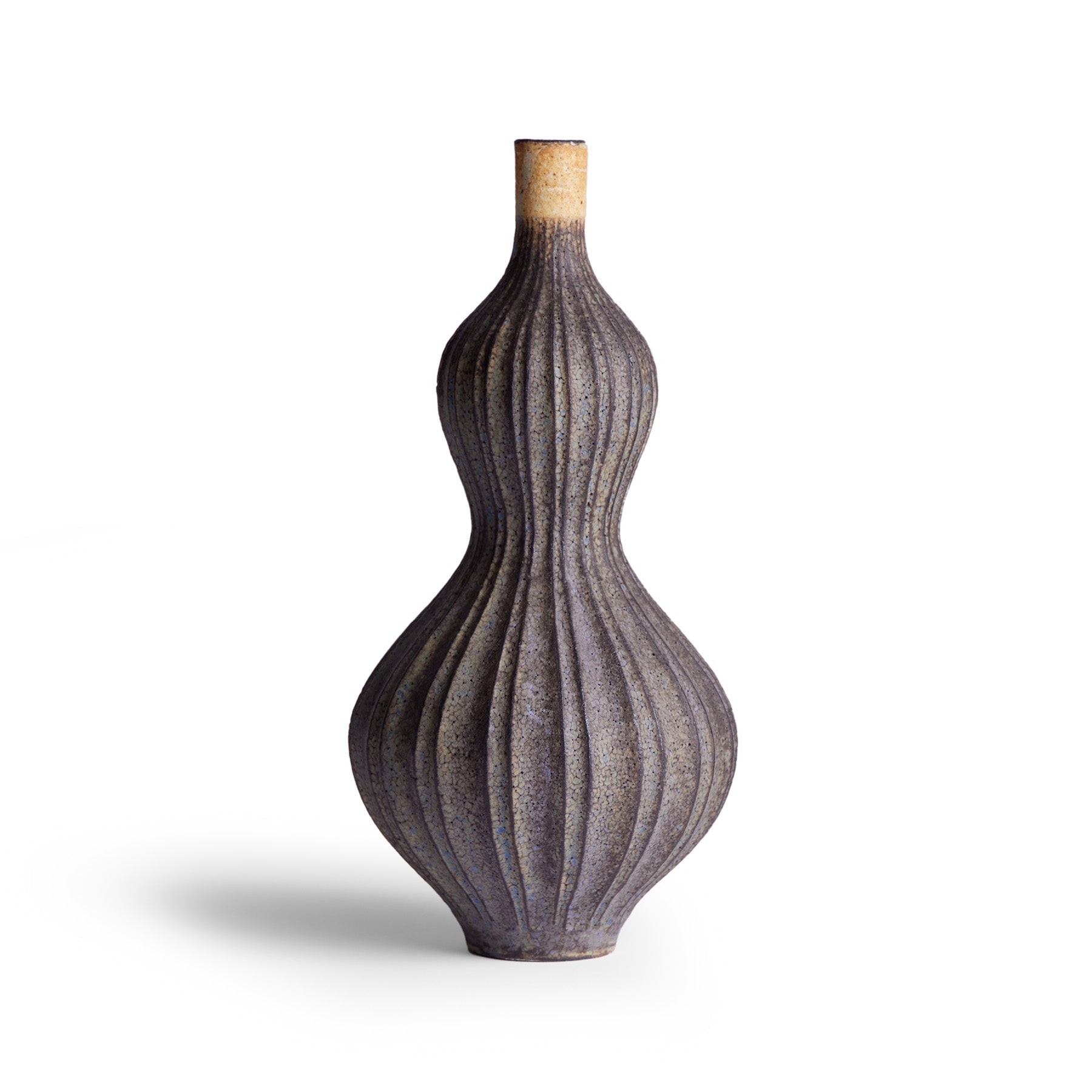 For Akio Nukaga throwing on the wheel is a technique close to his heart. one that he can always rely on. This piece features his signature “Pleated Work” technique of carving grooves into the wet clay after it is thrown on the wheel. These grooves accentuate the profile of the vessel creating movement and rhythm. Akio finishes the vessel by applying different colored slips (liquid clay)—a technique he has refined over the last 30 years—to create richly varied surfaces that are a joy to see and touch.