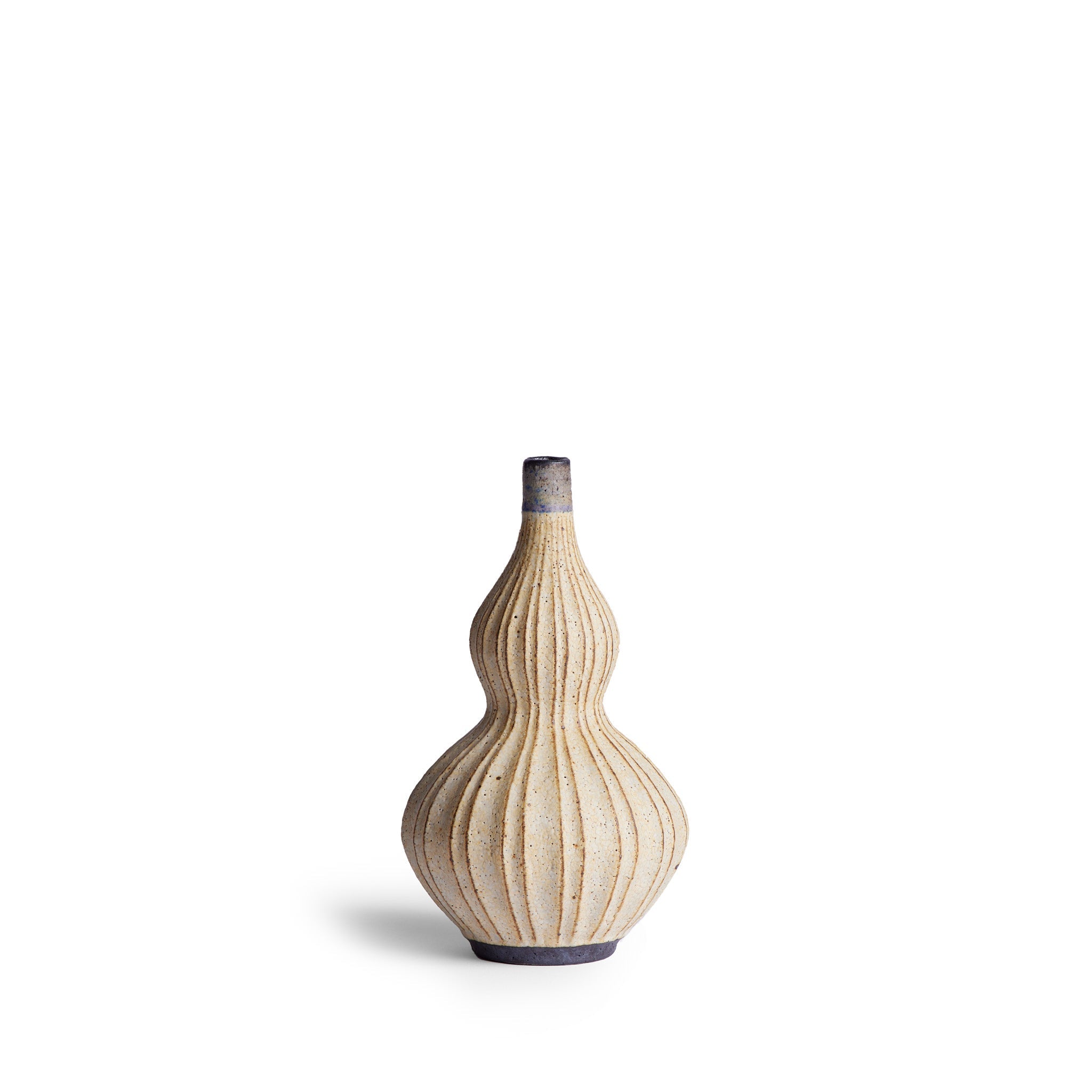 For Akio Nukaga throwing on the wheel is a technique close to his heart. one that he can always rely on. This piece features his signature “Pleated Work” technique of carving grooves into the wet clay after it is thrown on the wheel. These grooves accentuate the profile of the vessel creating movement and rhythm. Akio finishes the vessel by applying different colored slips (liquid clay)—a technique he has refined over the last 30 years—to create richly varied surfaces that are a joy to see and touch.
