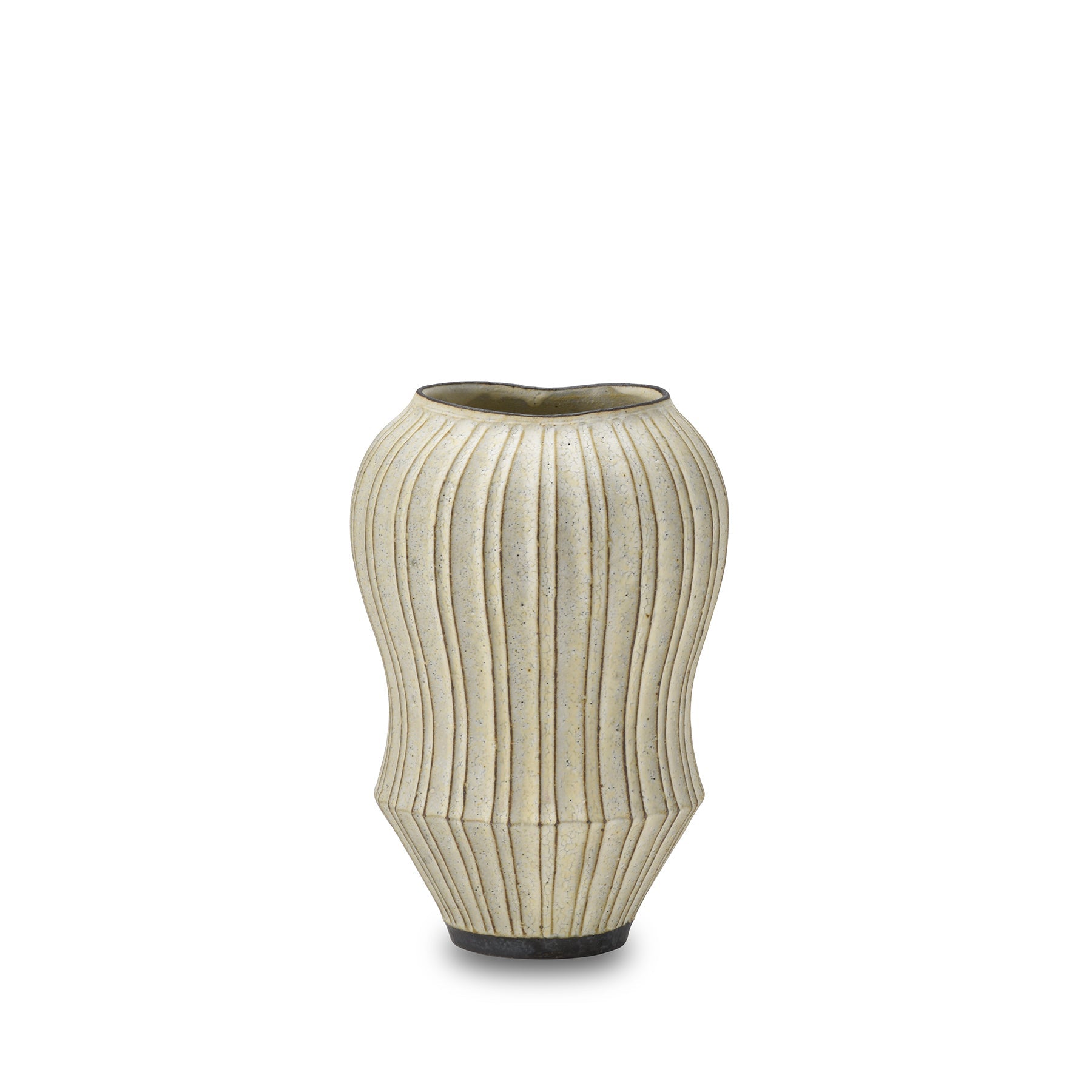 Akio Nukaga's work explores the possibilities of how he leaves a trace of himself in clay. This piece features his signature “Pleated Work” technique of carving grooves into the wet clay after it is thrown on the wheel. The form—inspired by ancient earthenware—is accentuated by these grooves curving down the profile of the vessel creating movement and rhythm. After the first firing and before the second. he finishes the vessel by applying different colored slips (liquid clay)—a technique that he has refined over the last 30 years. This piece will go on sale as part of Group 2 on Wednesday July 27. 2022. at 12pm PDT.