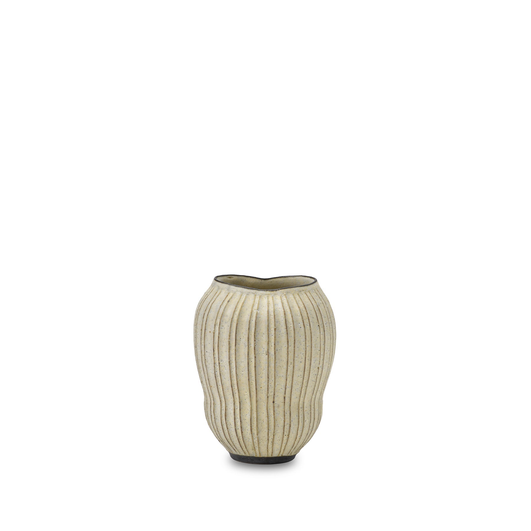 Akio Nukaga's work explores the possibilities of how he leaves a trace of himself in clay. This piece features his signature “Pleated Work” technique of carving grooves into the wet clay after it is thrown on the wheel. The form—inspired by ancient earthenware—is accentuated by these grooves curving down the profile of the vessel creating movement and rhythm. After the first firing and before the second. he finishes the vessel by applying different colored slips (liquid clay)—a technique that he has refined over the last 30 years. This piece will go on sale as part of Group 2 on Wednesday July 27. 2022. at 12pm PDT.