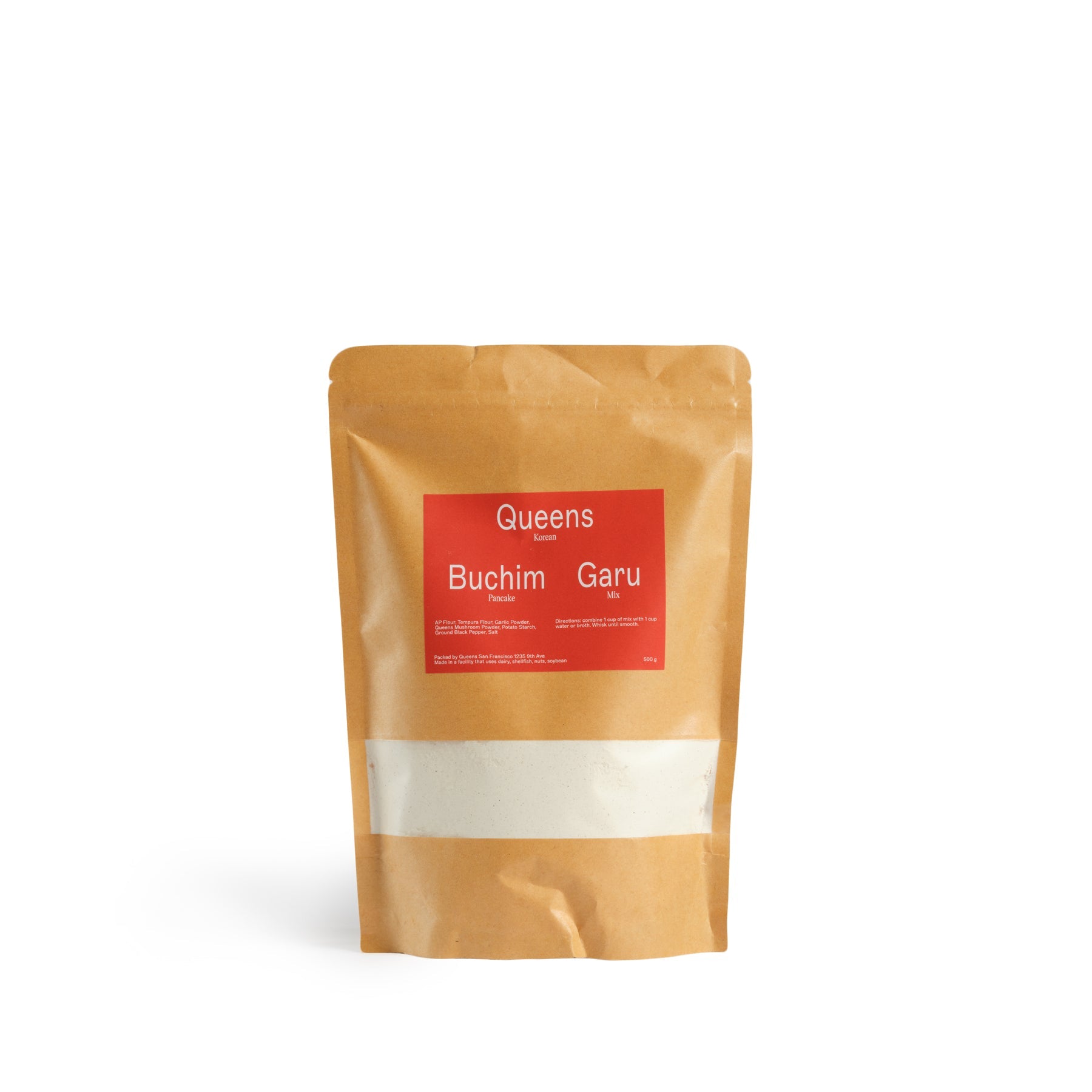 The house Korean pancake mix from Queens in San Francisco is now available to make at home. The Buchim Mix is what is used to make extra crispy. traditional seafood & garlic chive Haemul Buchu Jeon.