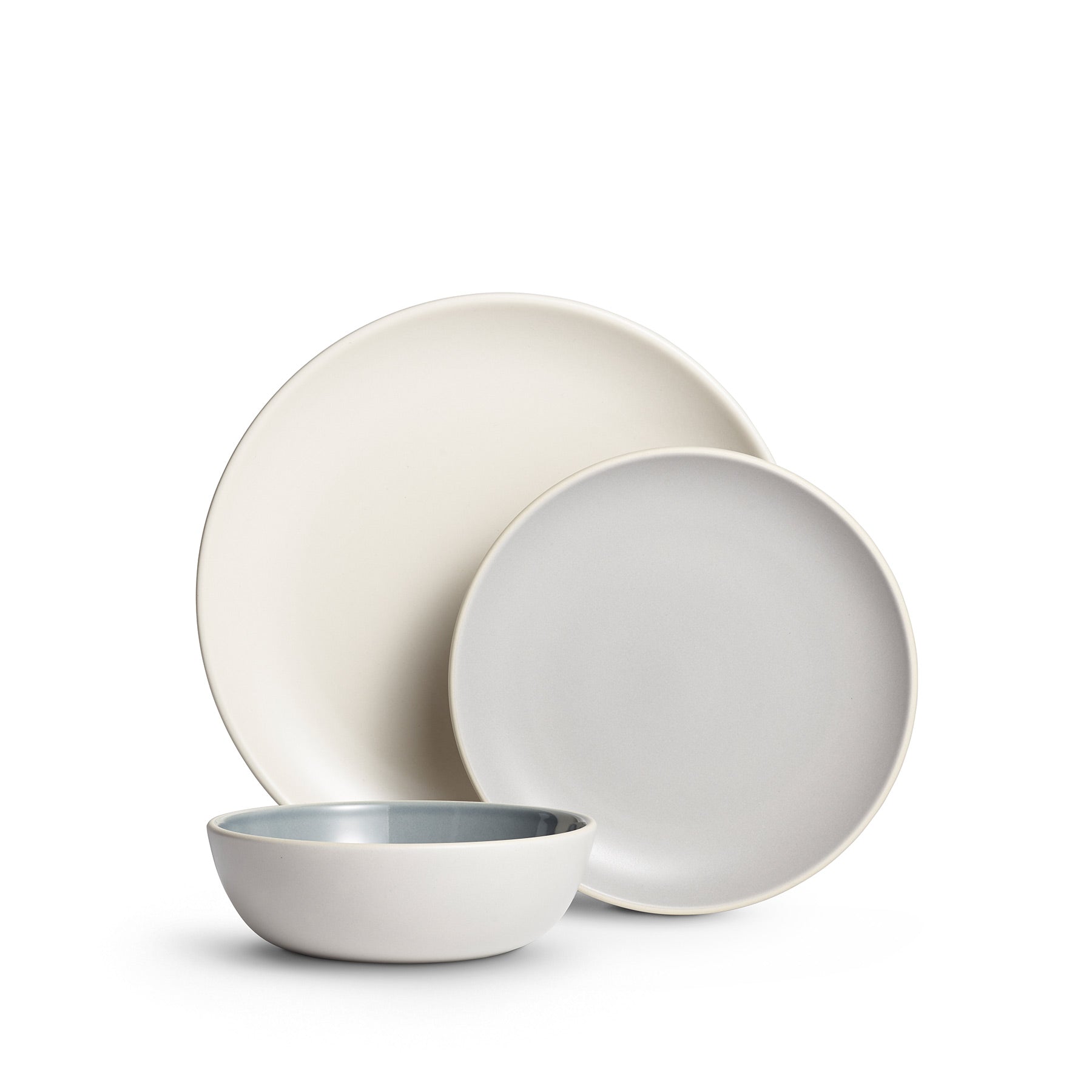 A gentle. soft palette with just the right pair of greys. as our Ocean/Salt glaze adds hint of translucent. watery blue-grey to this food-friendly set.