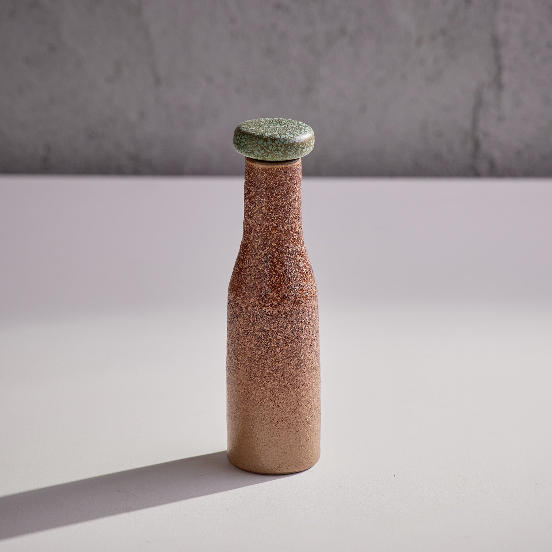 This is a simple bottle with a green stopper. —Tung Chiang. Clay Studio Director