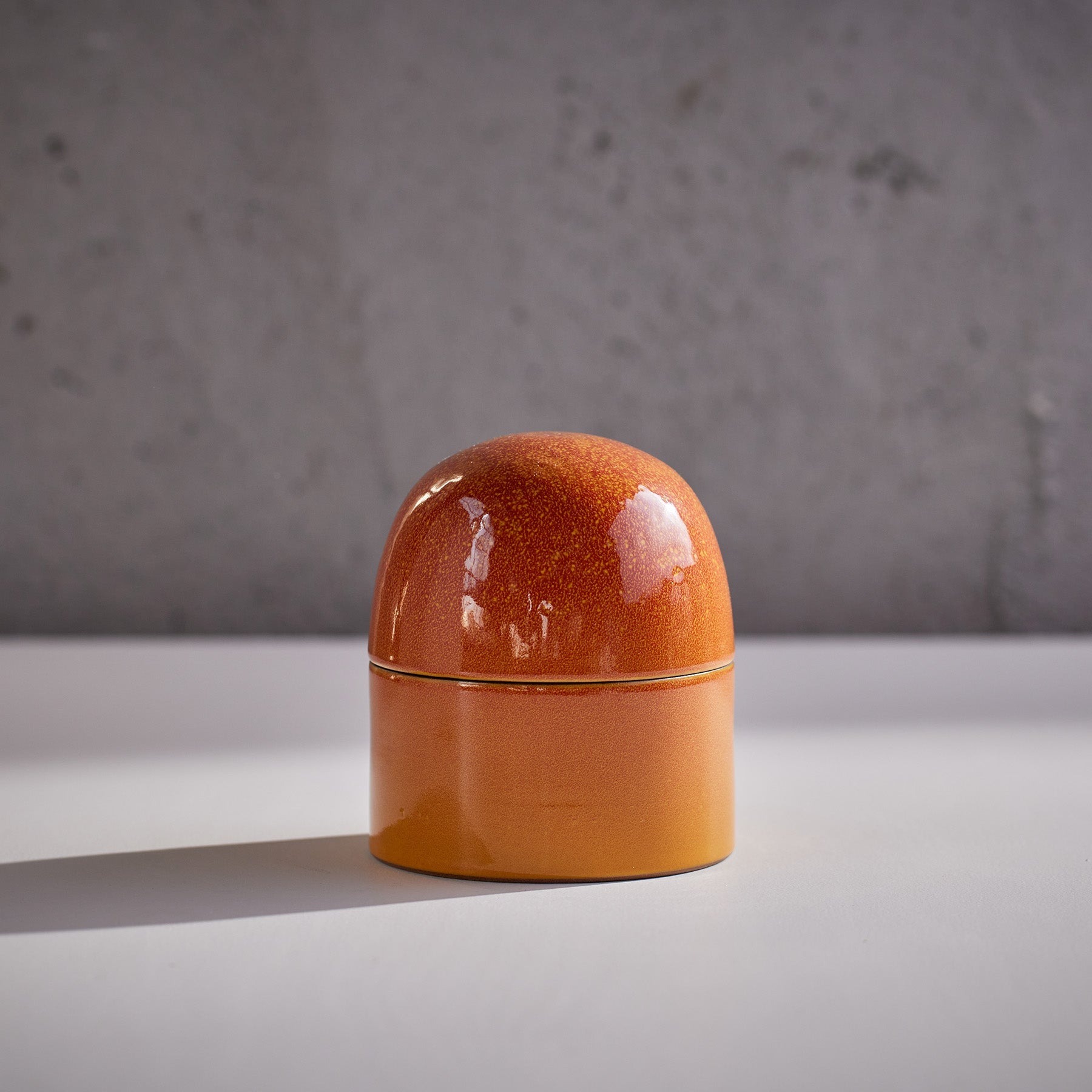 This piece has a dome-shaped lid with bright green interior for a little surprise. —Tung Chiang. Clay Studio Director