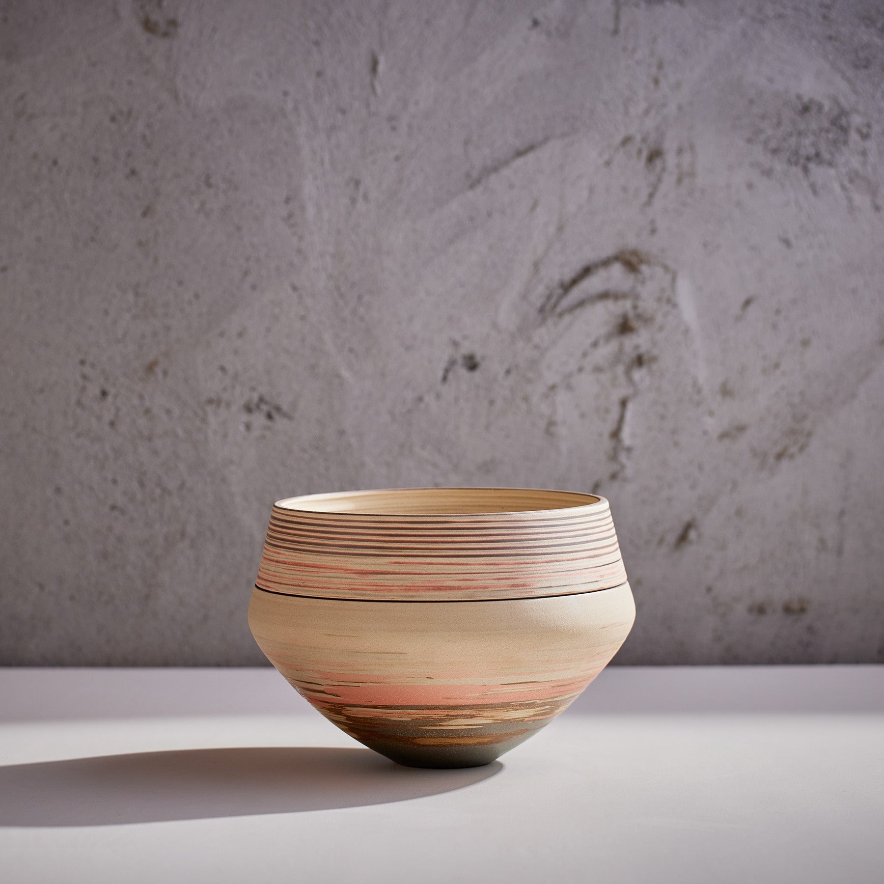 For me a lidded object goes beyond the space between the top and the bottom. Storage can happen inside as well as outside. These two bowls stack on top of each other to form a large bowl. —Tung Chiang. Clay Studio Director