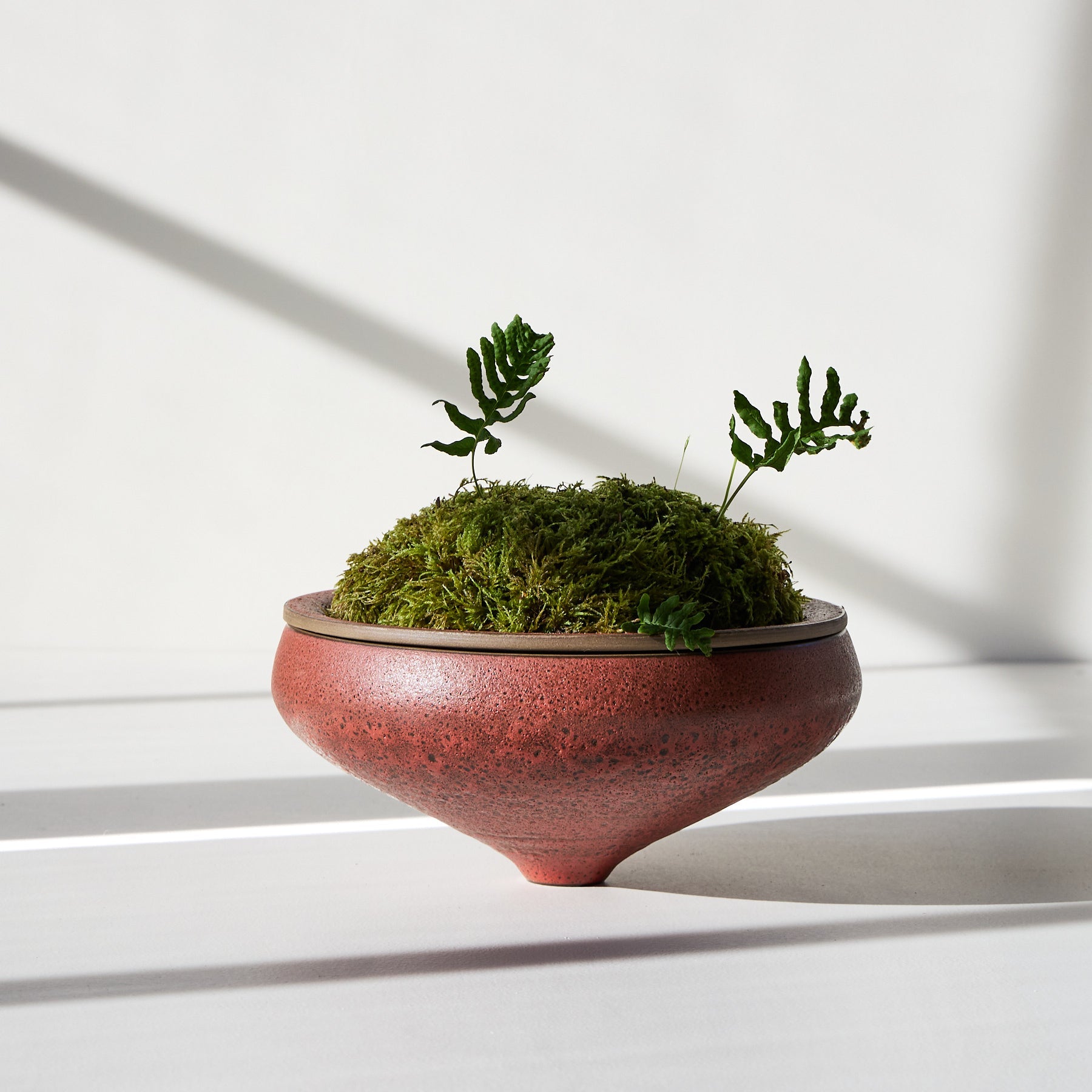 This form is about bringing the outside in. I wanted to contradict the typically heavy base. transforming it so that the planter appears lifted. as if floating on air. When I planted it for the first time. I thought of the simple principles of cooking: when you have amazing ingredients. you don't need to manipulate them. Just a simple bowl of moss and ferns compliments the form. — Tung Chiang