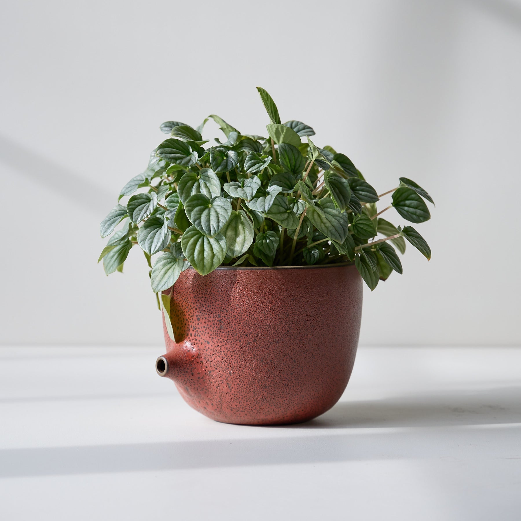 The planter and saucer in this form are not two separate components. but one unified object with a double wall. The interior layer has holes at the bottom for plant drainage. and the exterior features a spout low on the body. resembling a teapot. I found the low spout to be an interesting design solution for the problem of drainage. and a new perspective on the act of maintaining plant health. — Tung Chiang