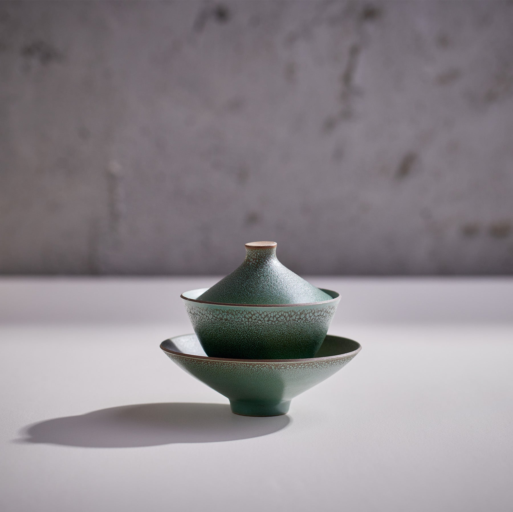 My uncle used to drink tea from this kind of cup. The lid doubles as a tool to sweep away loose tea leaves floating on the surface of the tea while you drink. No strainer required. —Tung Chiang. Clay Studio Director