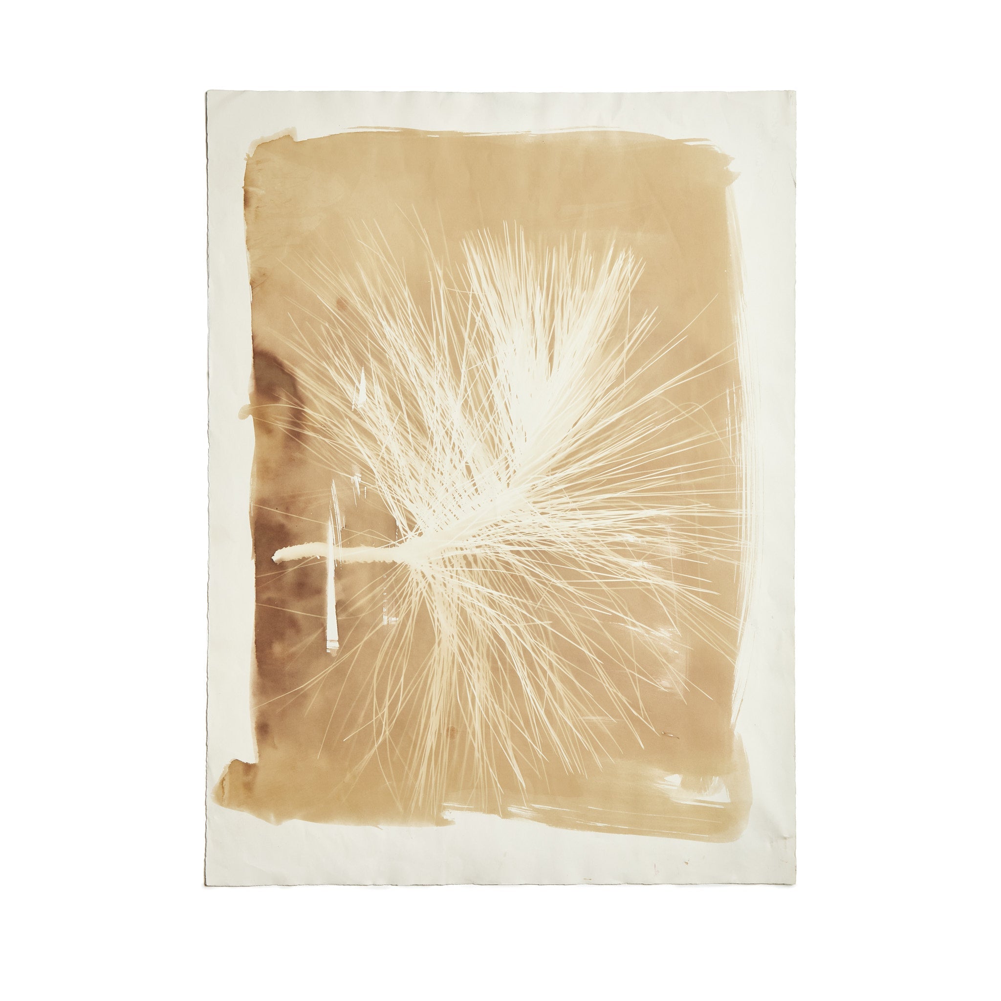 Rinne Allen's light drawings capture the flora of her garden as it changes throughout the year. To create her drawings a light sensitive emulsion is painted onto paper in the dark. Then she places different objects on the paper and places them in the sun. The interaction of sunlight. object. and emulsion captures the object's silhouette on the page. These one-of-a-kind pieces are a natural complement to the Summer Seasonal collection.