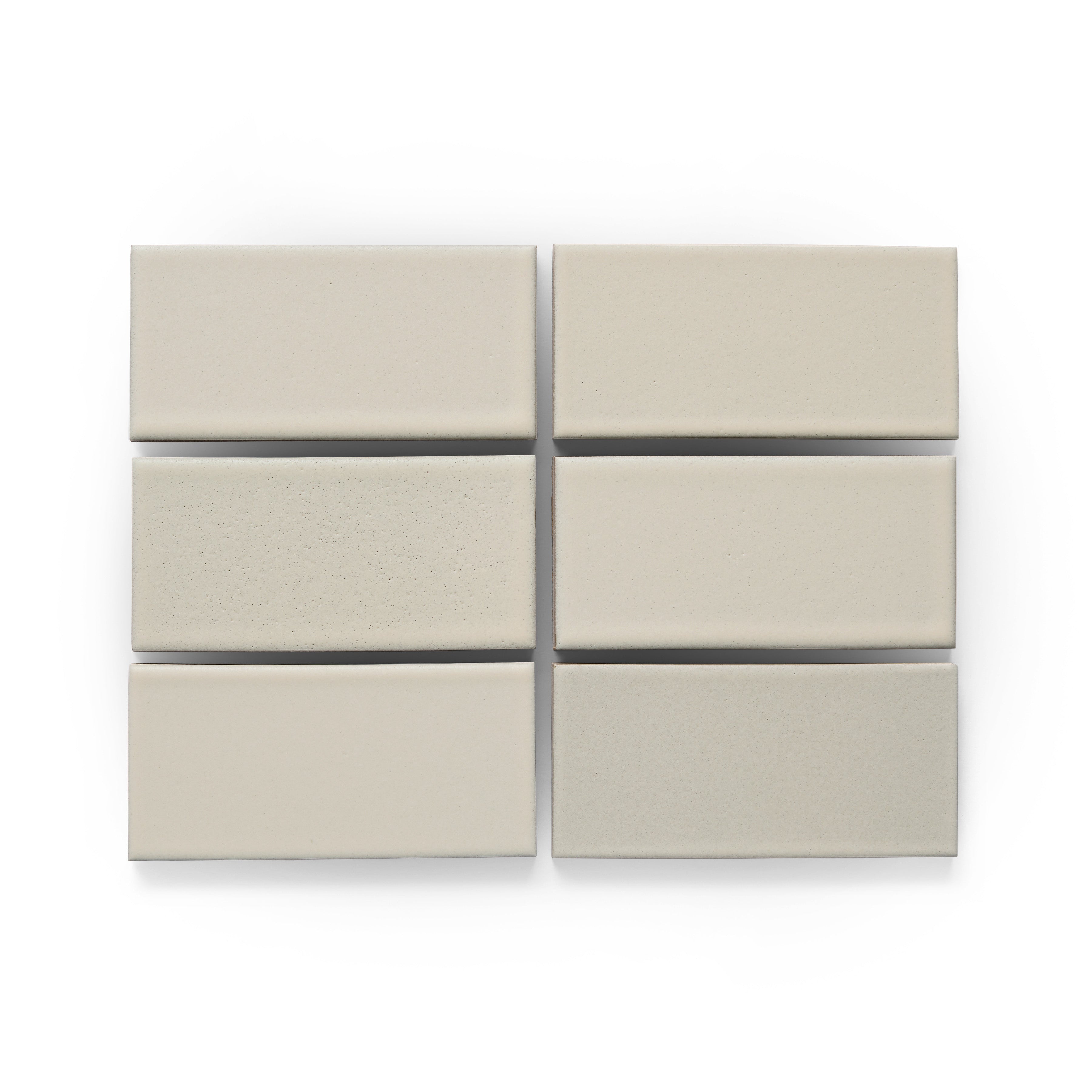 A warm. off-white. matte glaze. This glaze will display a range of soft and shifting hues in different lights and some texture on the surface. Sold individually. Up to 6 tile samples may be ordered online. Glaze sample out of stock? Don't worry—all of our tile is made to order for every project.