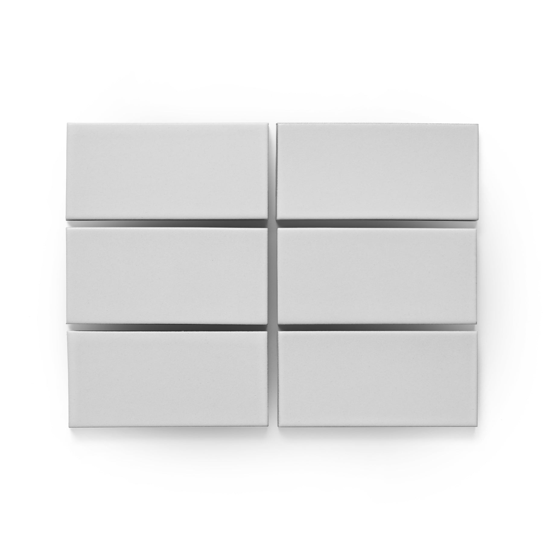 Slightly translucent and slightly grey as the clay body shows through this matte off-white glaze. Sold individually. Up to 6 tile samples may be ordered online. Glaze sample out of stock? Don't worry—all of our tile is made to order for every project.