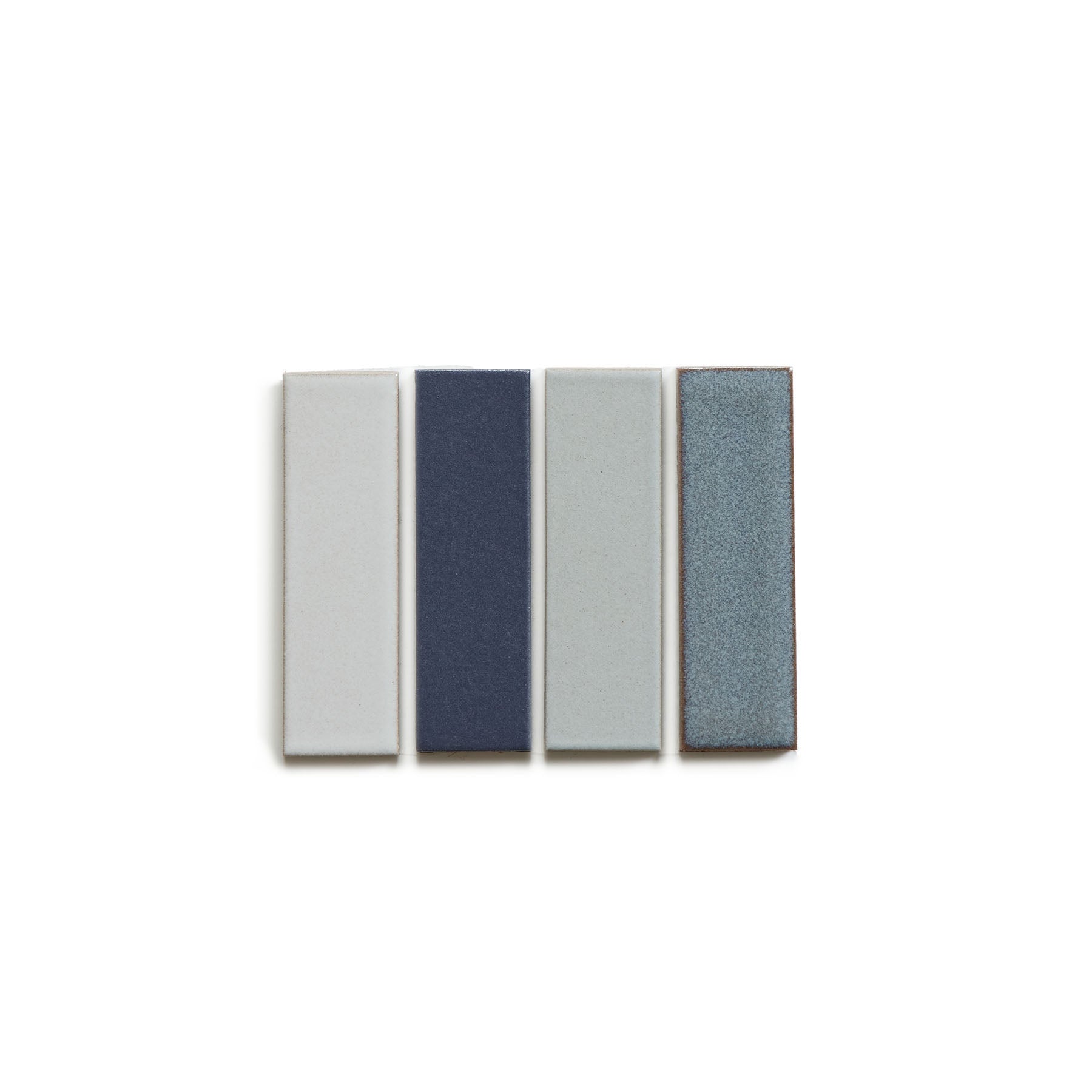 The Mural collection is a series of pre-configured tile patterns in curated colorways. The Reed pattern uses 1x3 tiles—a versatile size and shape that lend itself to creating block-like patterns where proportion. scale. and color can really shine. The colors of each palette are carefully chosen and placed to create an effect that resembles woven fabric with moments of layered transparency and dynamic movement. The Shore colorway consists of Slate Blue. Polo Grey. Meteorite. and Hydrangea. Up to one tile sample kit may be ordered online.