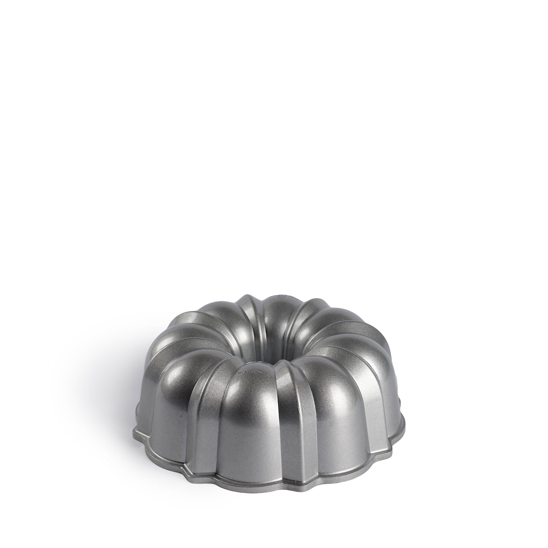 This is the original beloved Bundt pan design. It's made of cast aluminum for efficient heat distribution and finished in sparkling. metallic silver for the holidays.