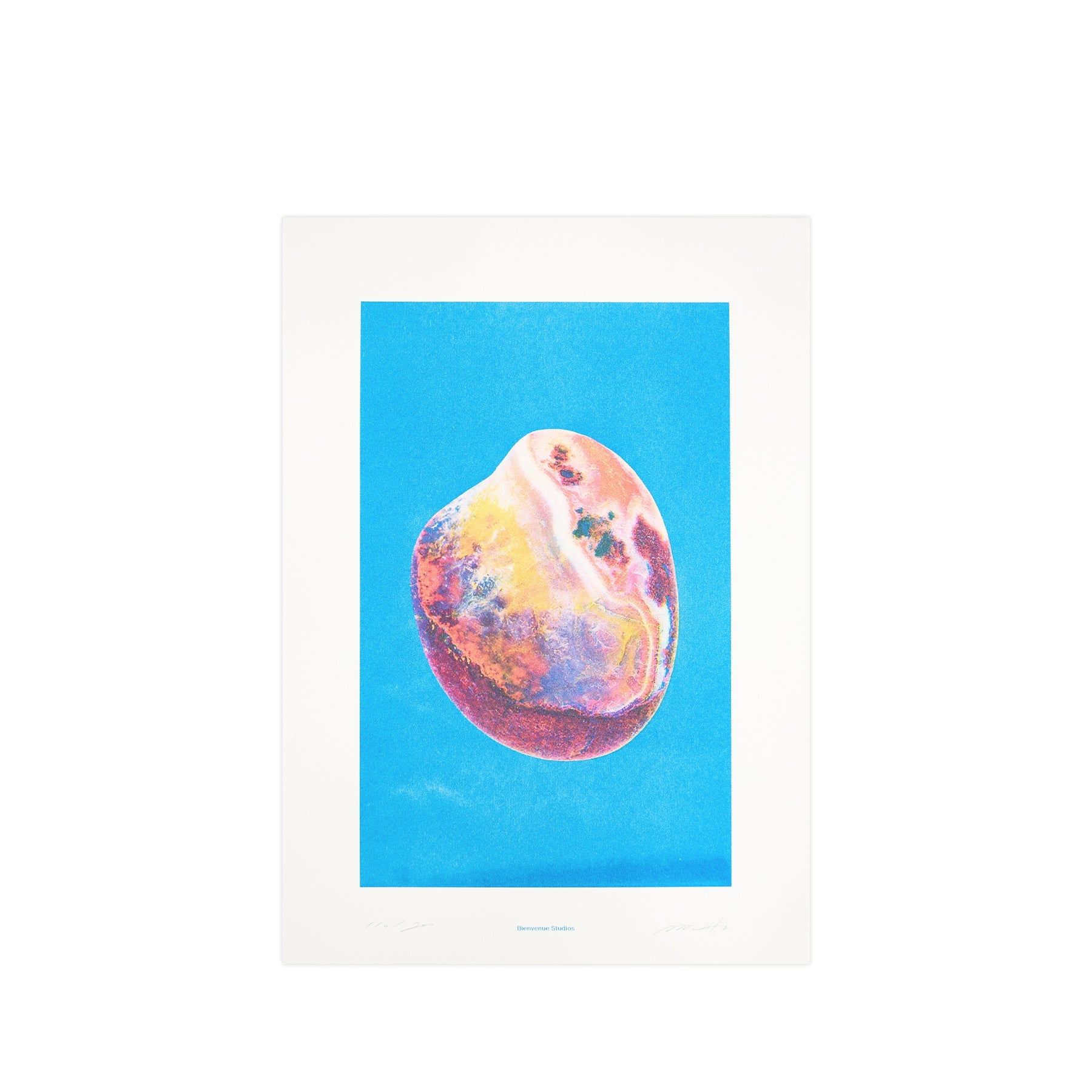 This print is inspired by the Chinese tradition of collecting river stones. Called Yuhua—meaning Rain Flower—these beautiful stones were historically found along the banks of the Yangzi river in Nanjing. A legend goes that a monk spent many days teaching in this remote area without food or water. Impressed with his dedication. the heavens showered him with flowers which turned to stones when they touched the ground.