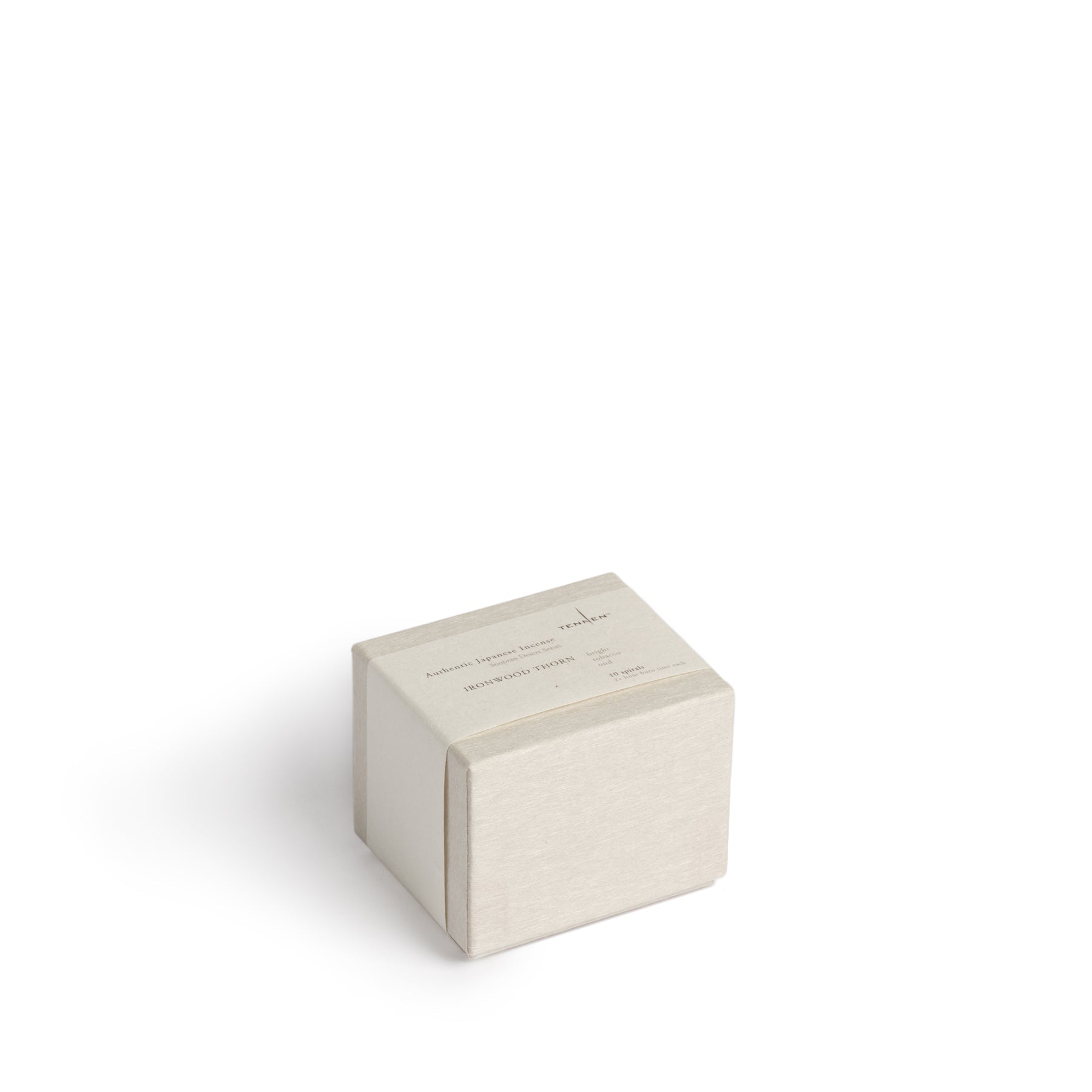 The hostile reality of living in the desert—unrelenting sun. heat. sparse vegetation. sharp cacti—is offset by the beauty and awakening of the senses that comes with life in the Sonoran Desert. The scents in this series embrace the rich and diverse experiences from the rocky barren landscapes of the canyons. to the lush and colorful wildflower displays after the desert rains. Spiral incense burns for longer than stick or cone for an extended aromatic experience. Ironwood Thorn features bright scents of tobacco and oud.