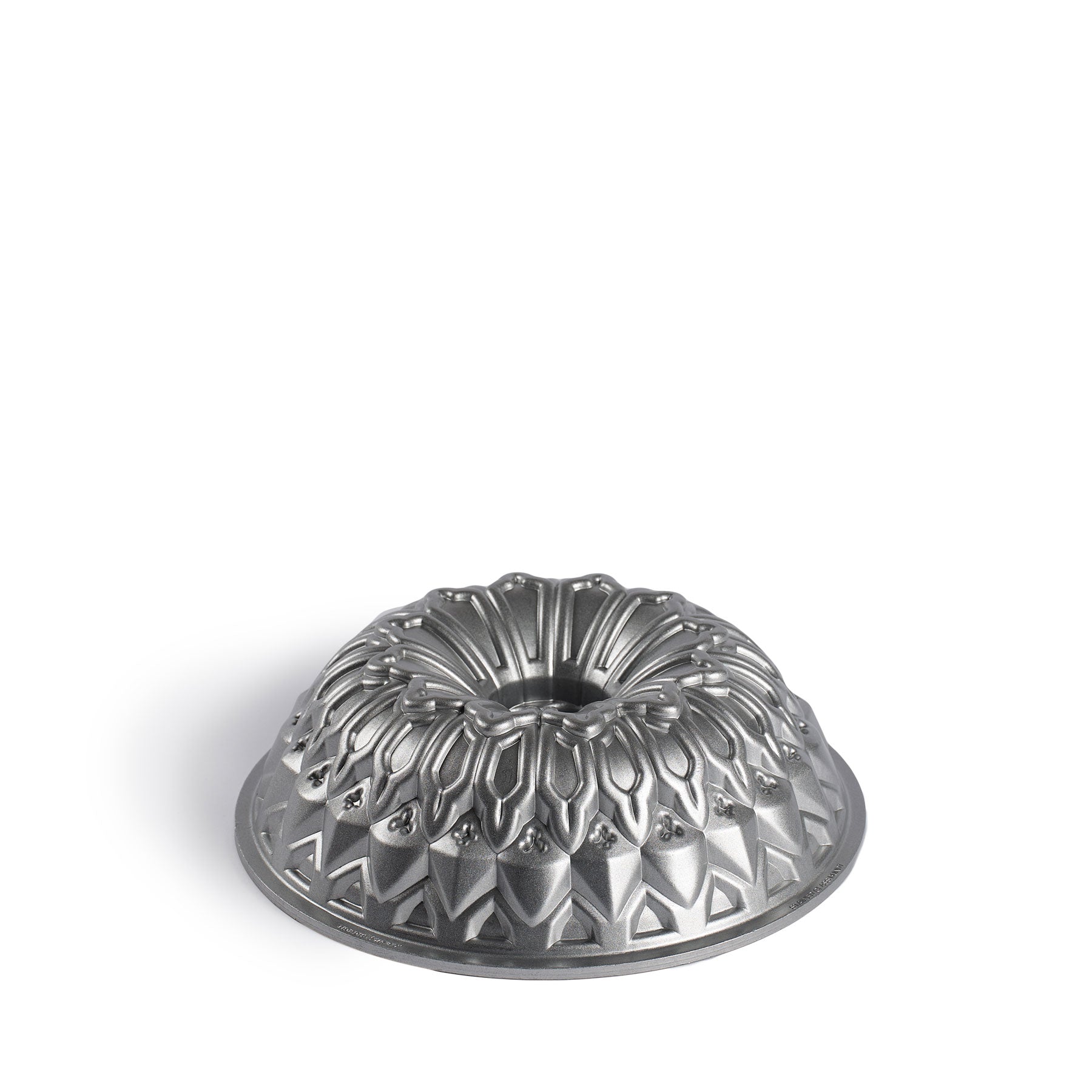 An intricate stained glass window inspired the design of this handsome pan. This Bundt pan produces cakes that are equally artful! It's made of cast aluminum for efficient heat distribution.