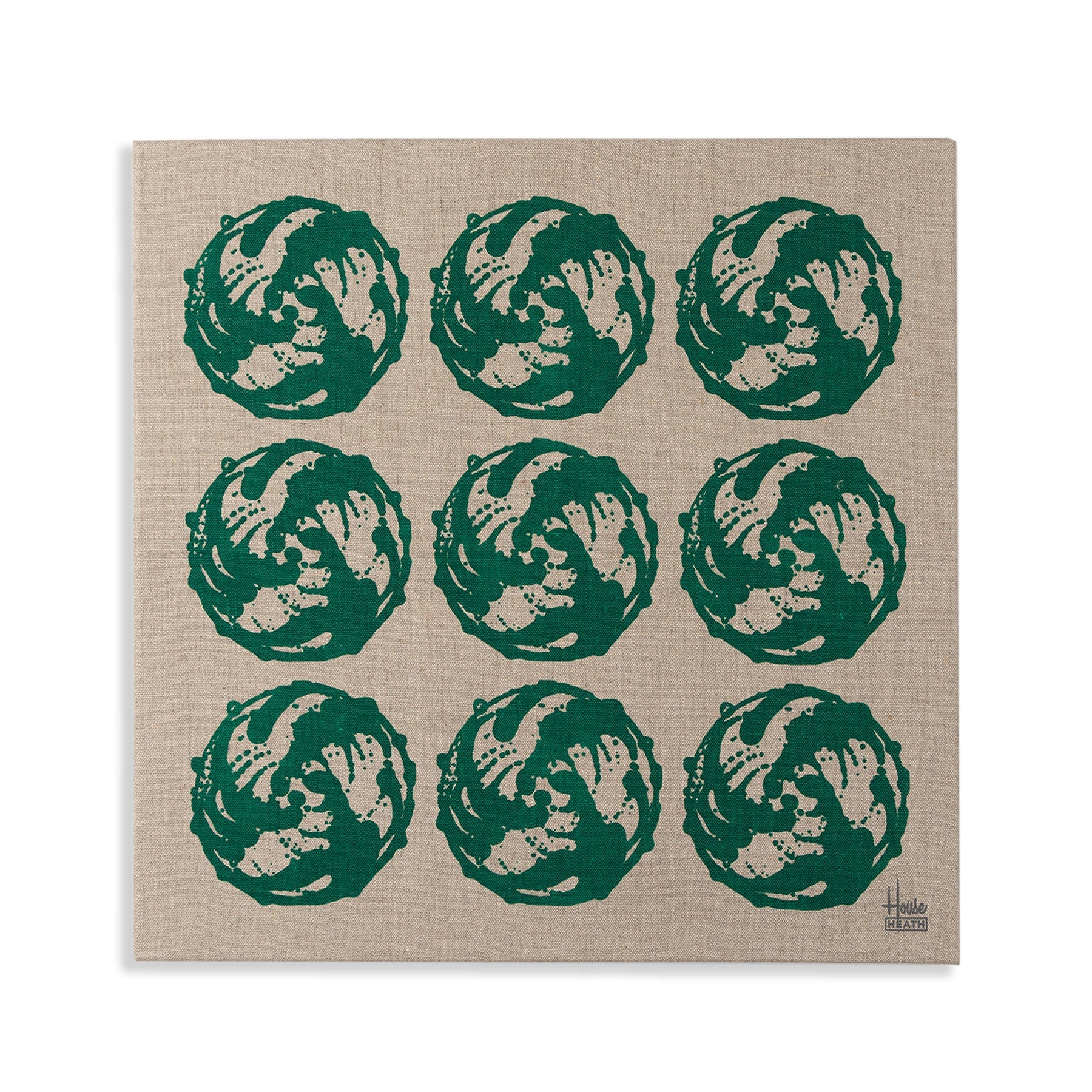 We've collaborated again with David Dodde of House Industries to bring some early Heath tile artwork to a new medium. Edith Heath and her niece Winnie Crittenden—who is now our Master Glazer—spun standard 12x12 tiles on the glaze wheel (a technique typically reserved for glazing dinnerware pieces. not tile) to create these unique patterns and effects. David reinterpreted those designs to create these large canvases in a color palette that complements our Winter Seasonal collection.