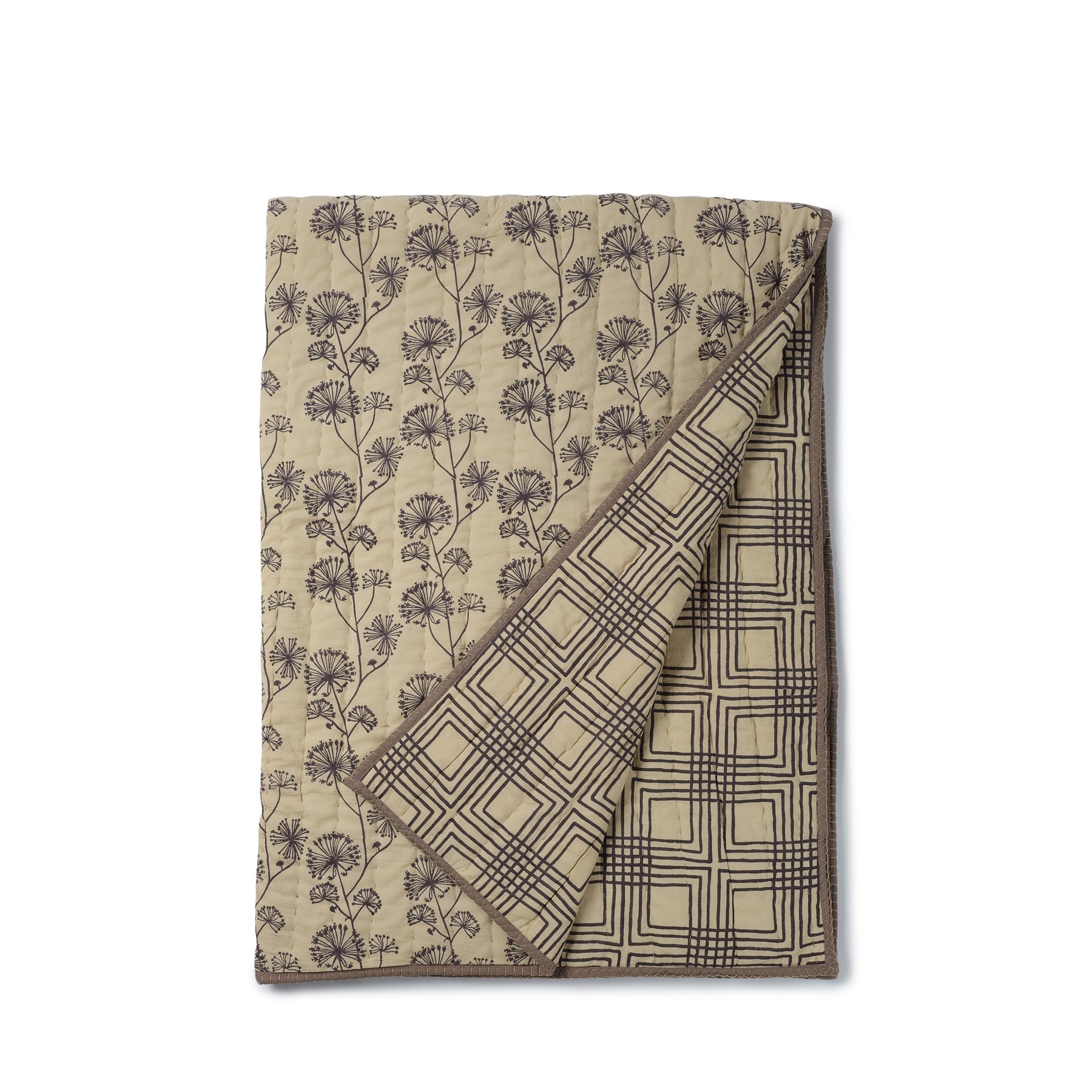 This reversible throw features a block-printed pattern on both sides. The percale cotton fabric and cotton filling make for a beauiful blanket that you can use year-round. Each quilt is hand-stitched using a traditional unknotted running-stitch technique.