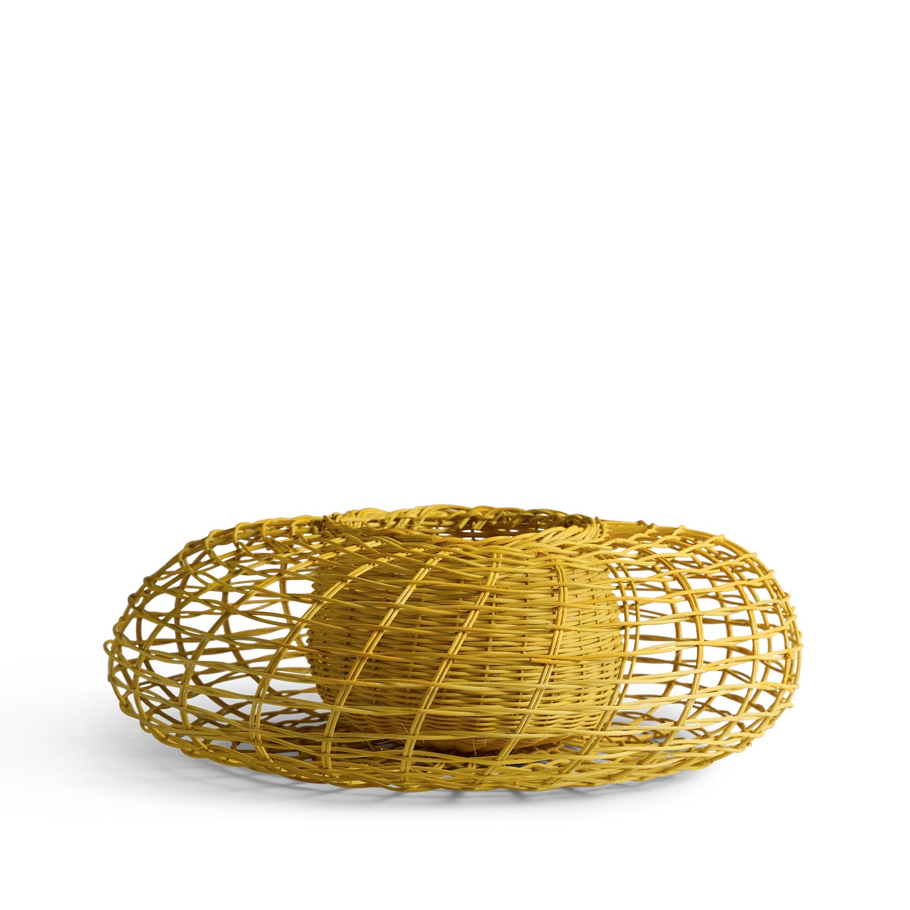 Studio Herron is inspired by the early roots of basketry—a craft that predates clay pottery and stone carving—and the language of ceramics when creating their woven pieces. Dyed by hand with vibrant colors and hand-woven using techniques that emphasize form. these vessels are both art objects and utilitarian pieces.